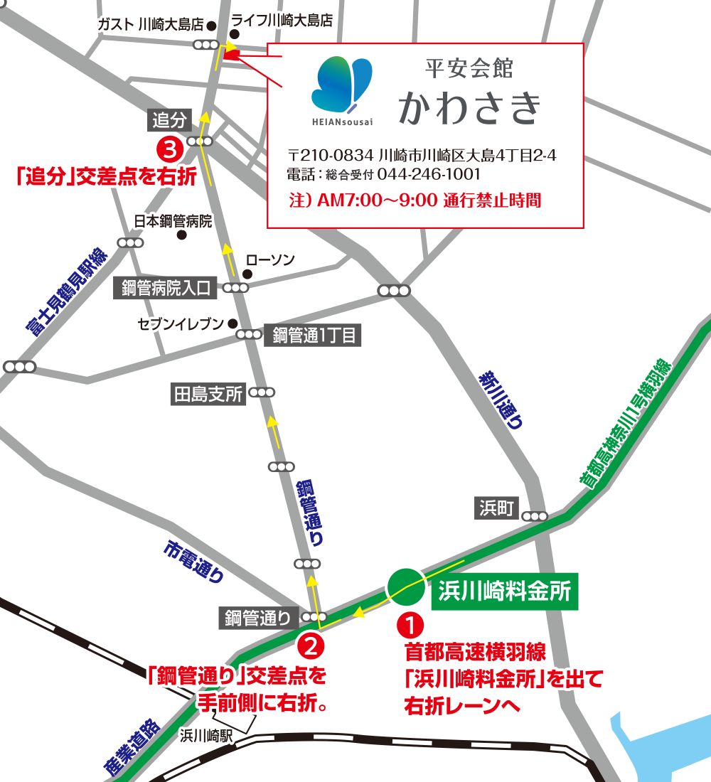 - セレモニア平安会館かわさきまでのアクセス方法を教えてください