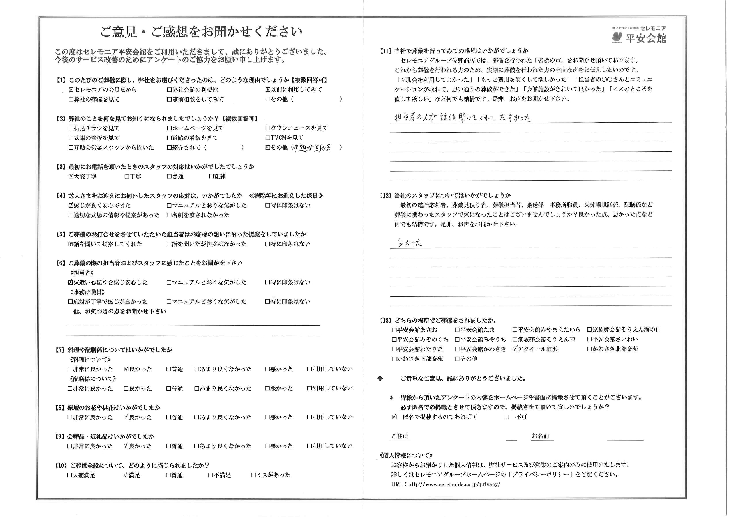 ご葬儀の際の担当者およびスタッフに感じたことをお聞かせ下さい
