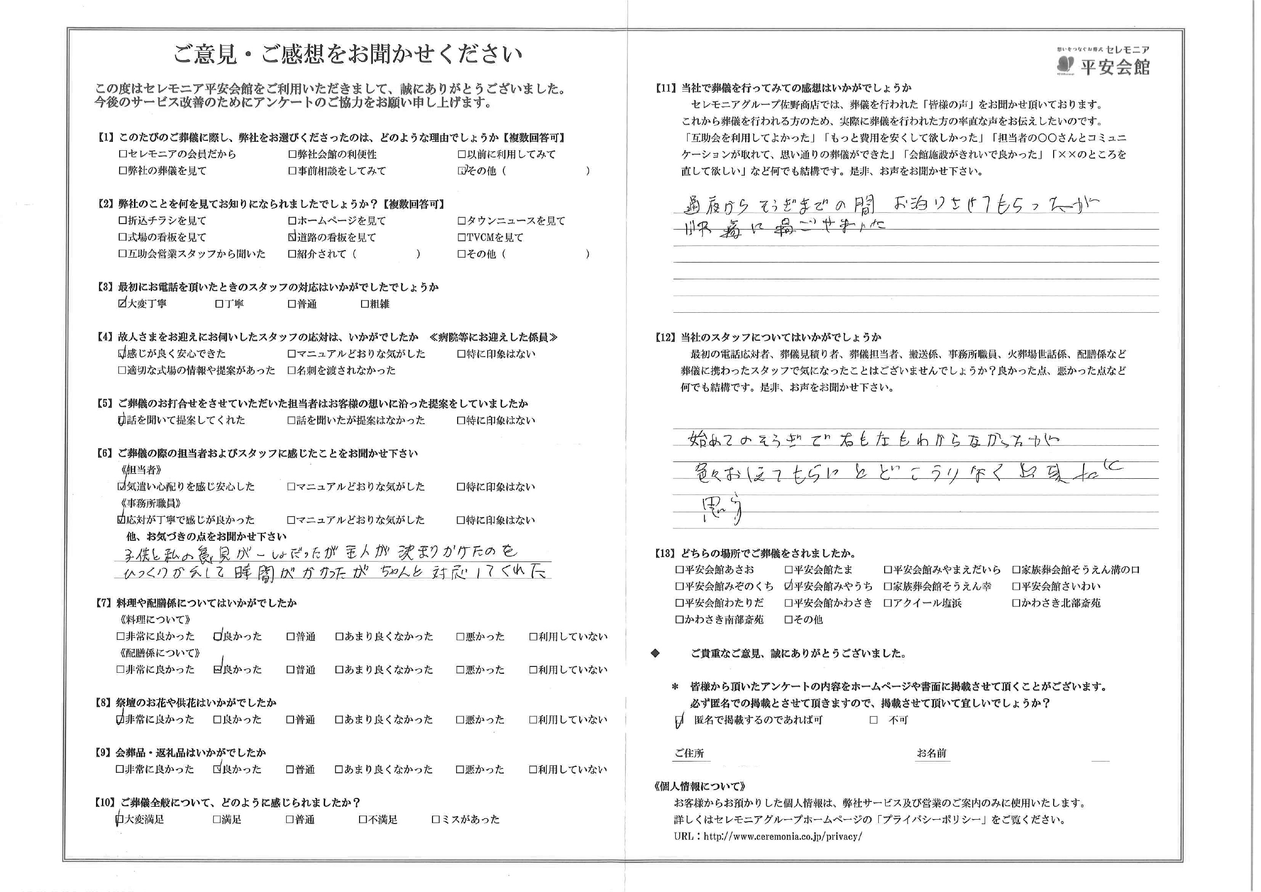 当社で葬儀を行ってみての感想はいかがでしょうか