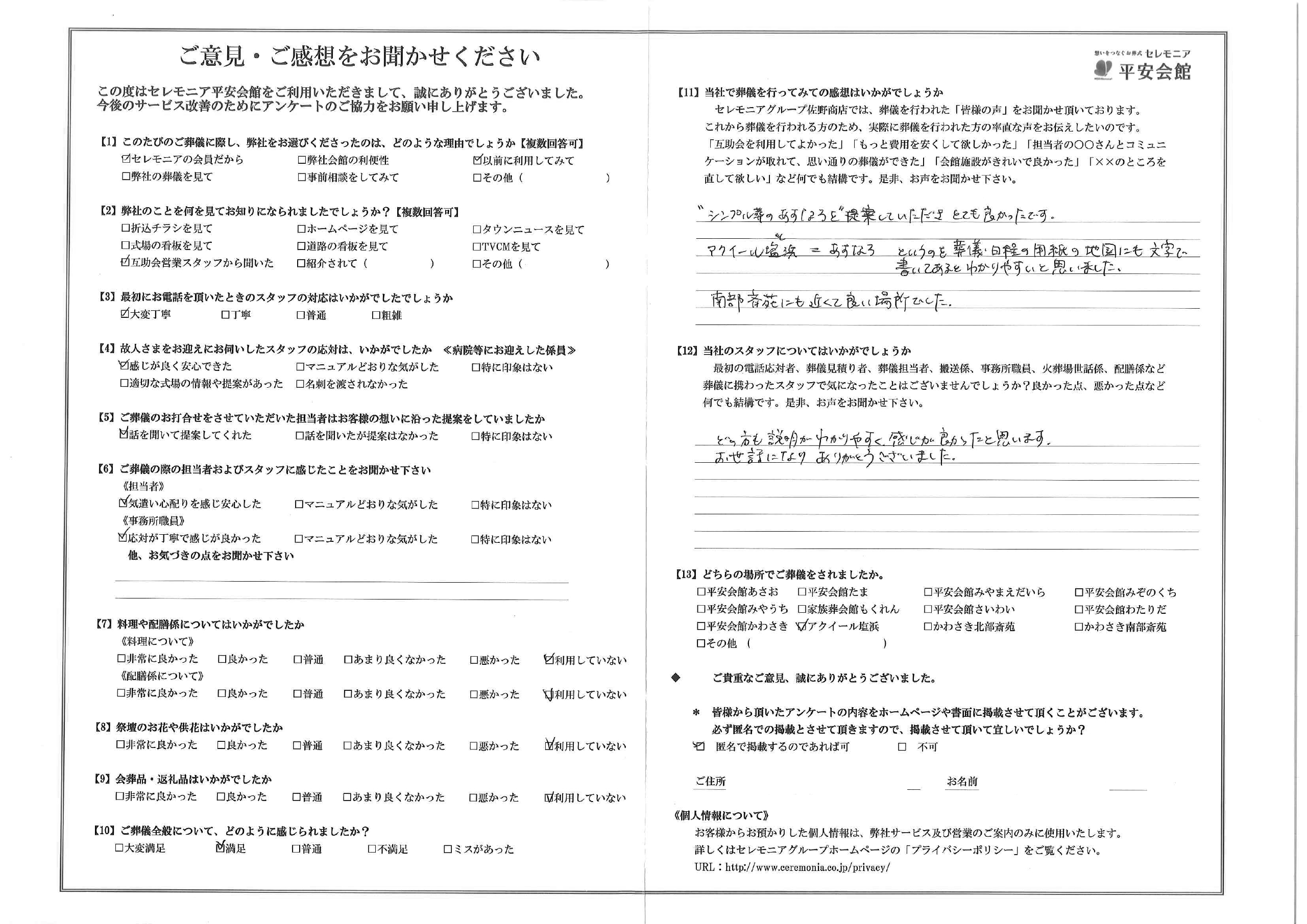 "シンプル葬のあすなろを”提案していただきとても良かったです。