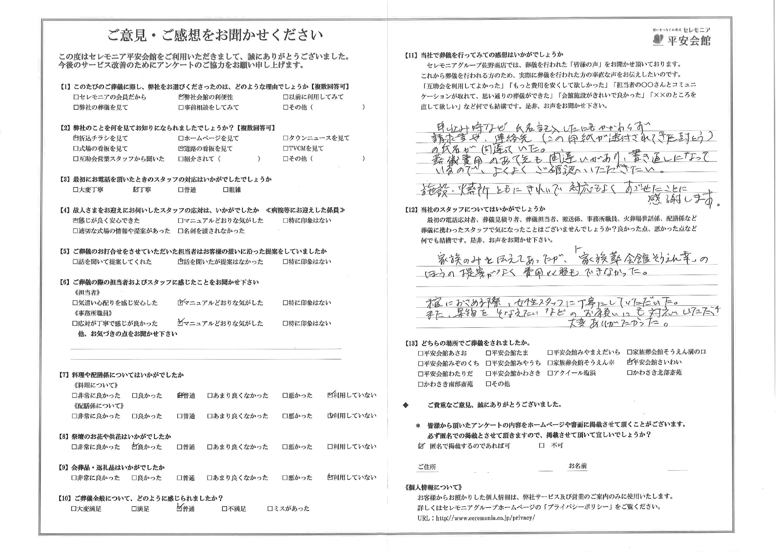 施設・火葬所ともにきれいで対応もよくすごせたことに感謝します。
