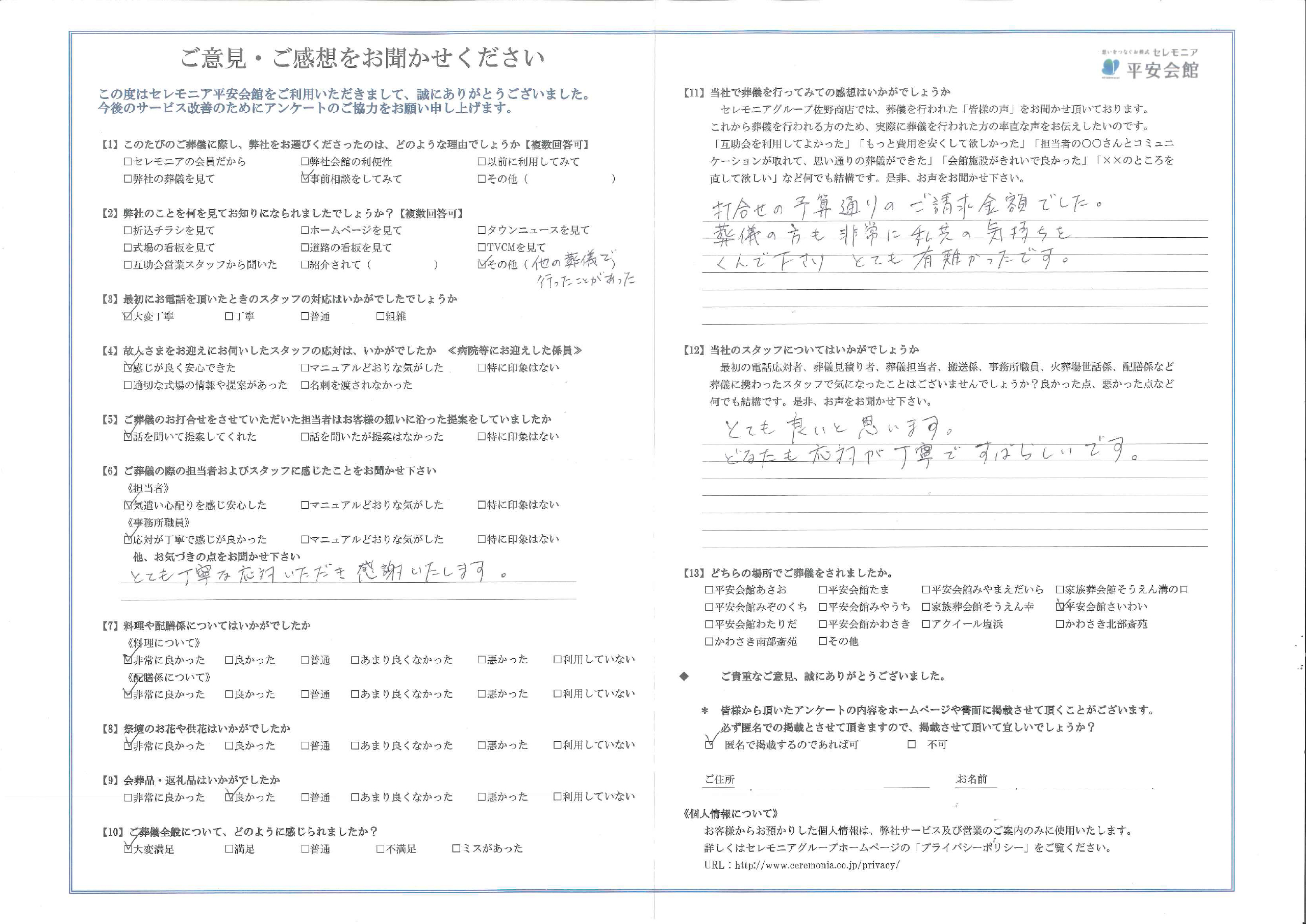 葬儀の方も非常に私共の気持ちをくんで下さりとても有難かったです。