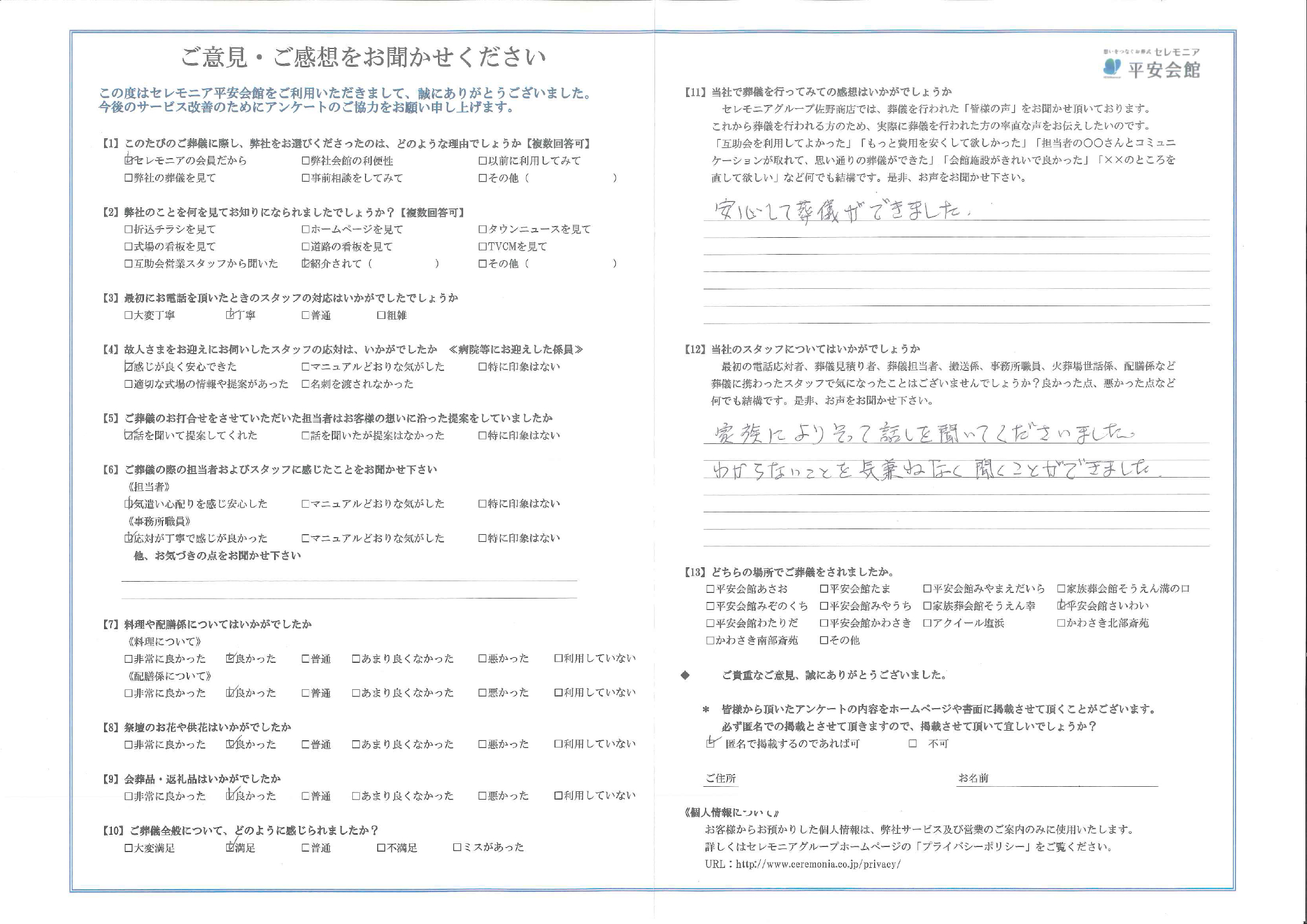 ご葬儀の際の担当者およびスタッフに感じたことをお聞かせ下さい