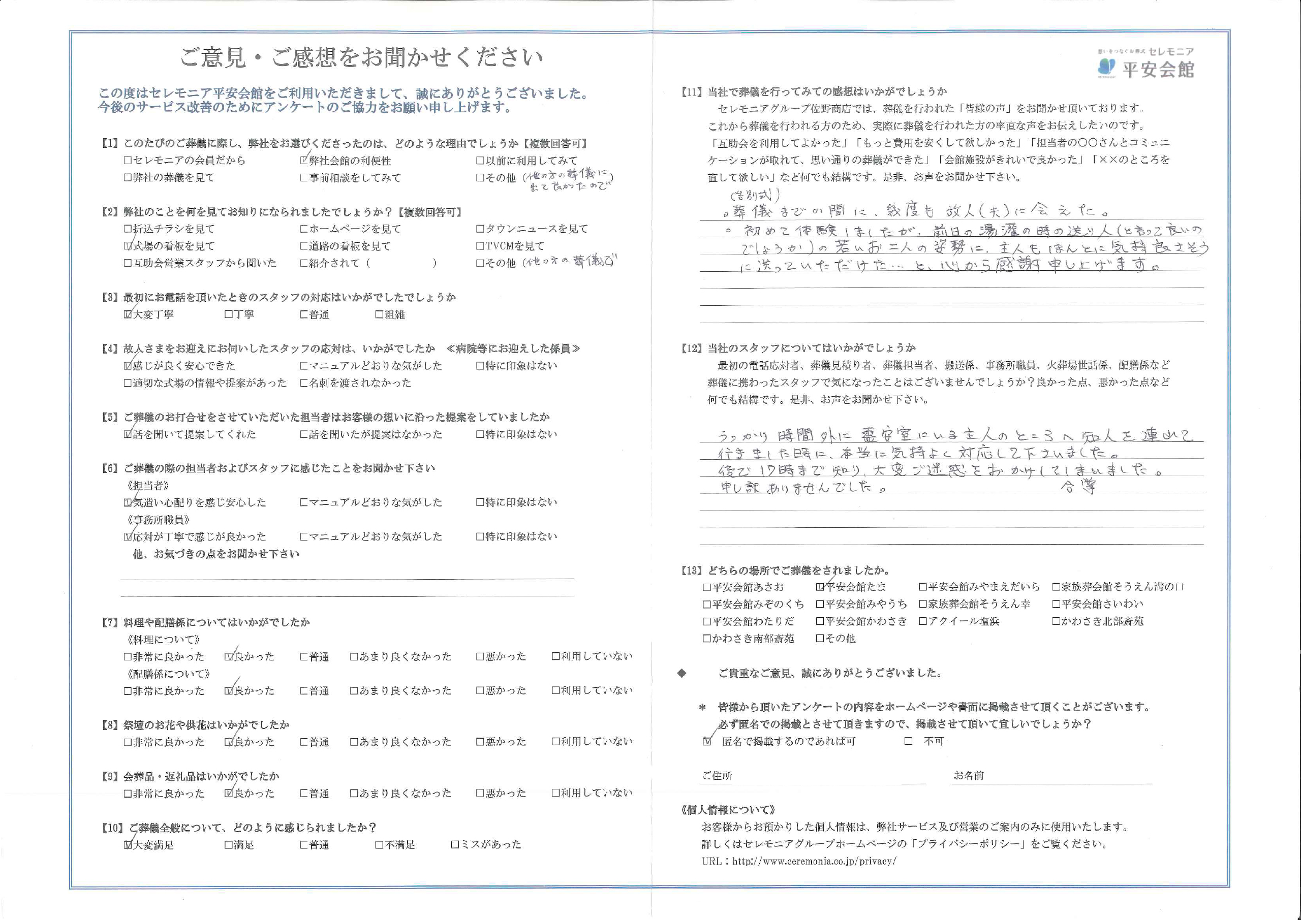 うっかり時間外に霊安室にいる主人のところへ知人を連れて行きました時に、本当に気持ちよく対応してくださいました。
