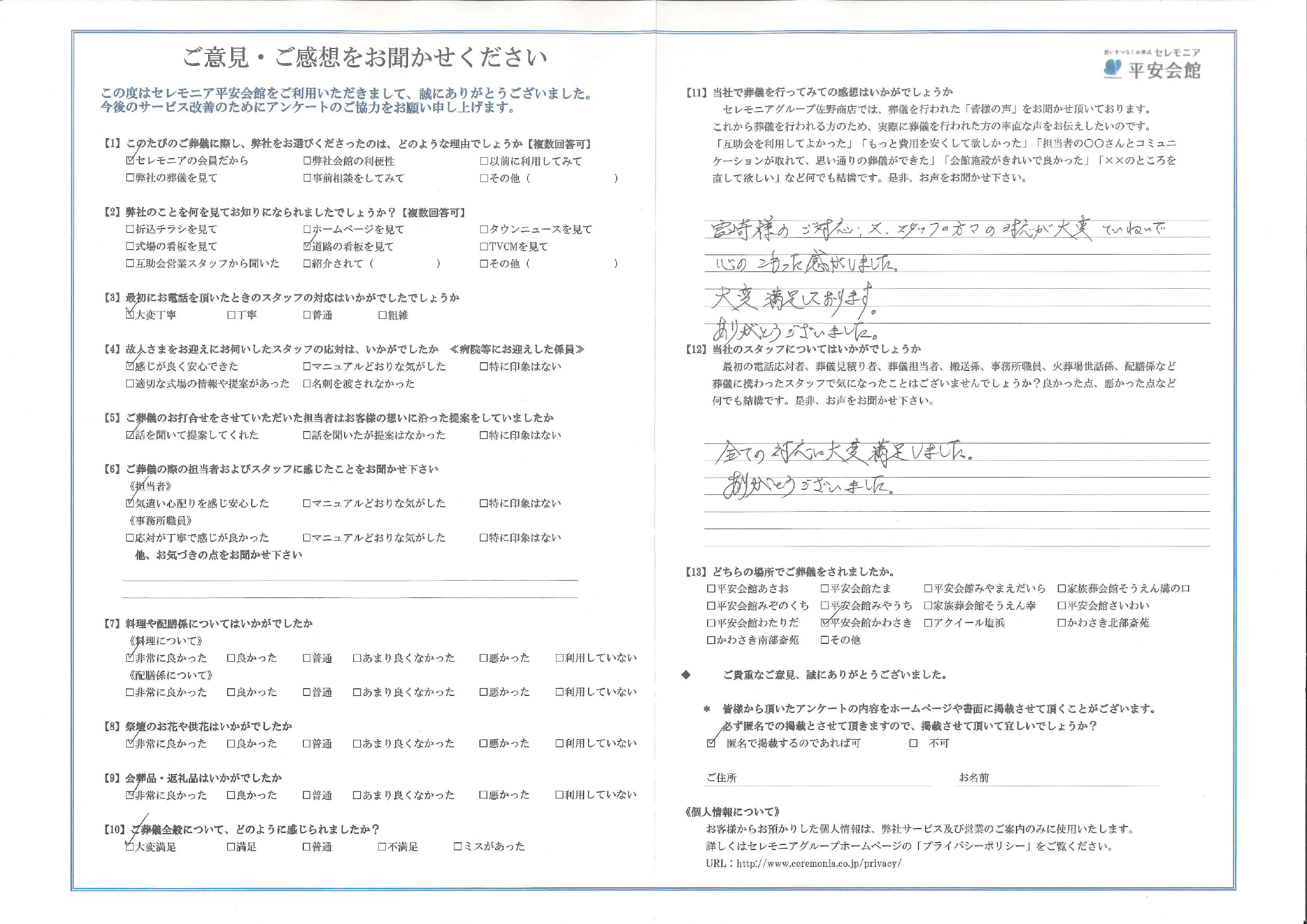 宮崎様のご対応、又スタッフの方々の対応が大変ていねいで心のこもった感がしました。