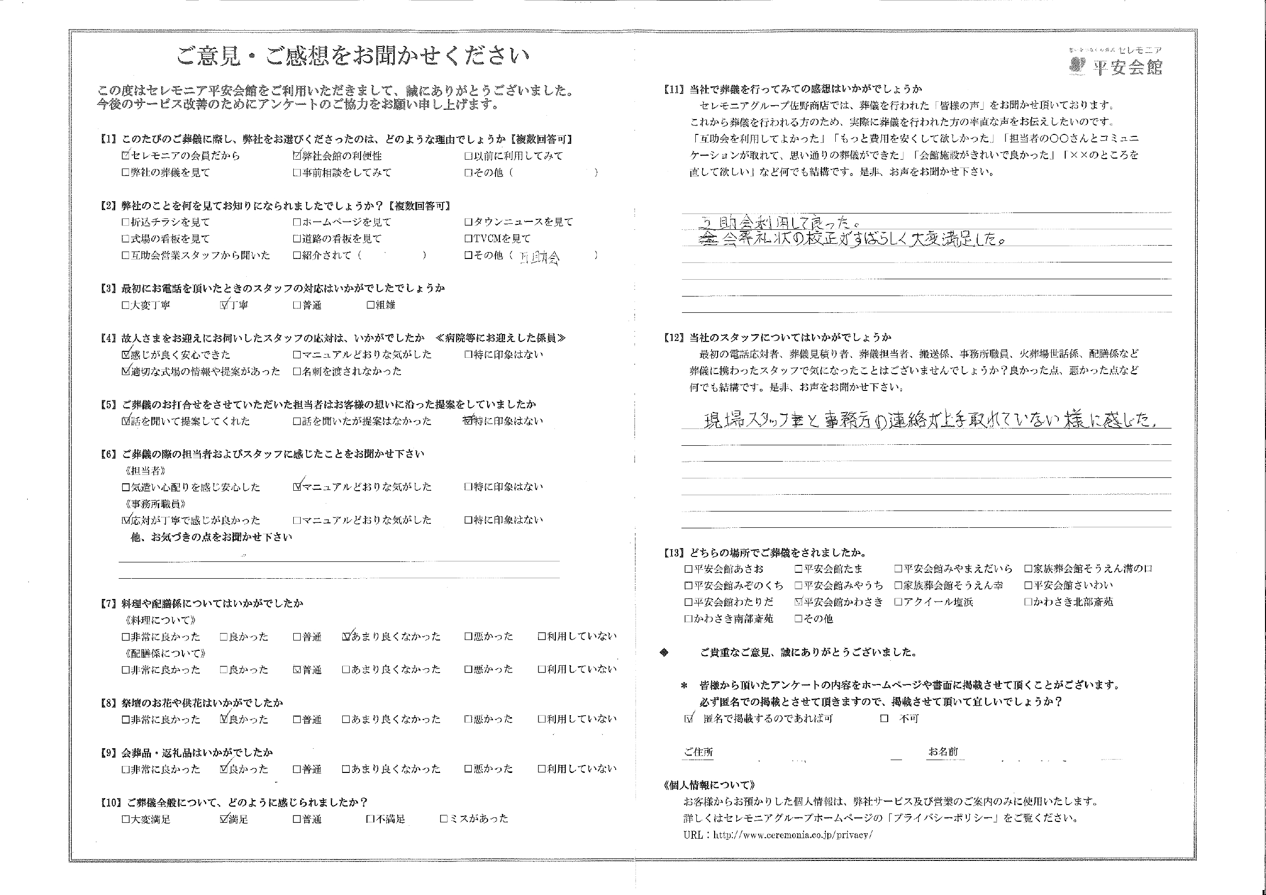 会葬礼状の校正がすばらしく大変満足した。
