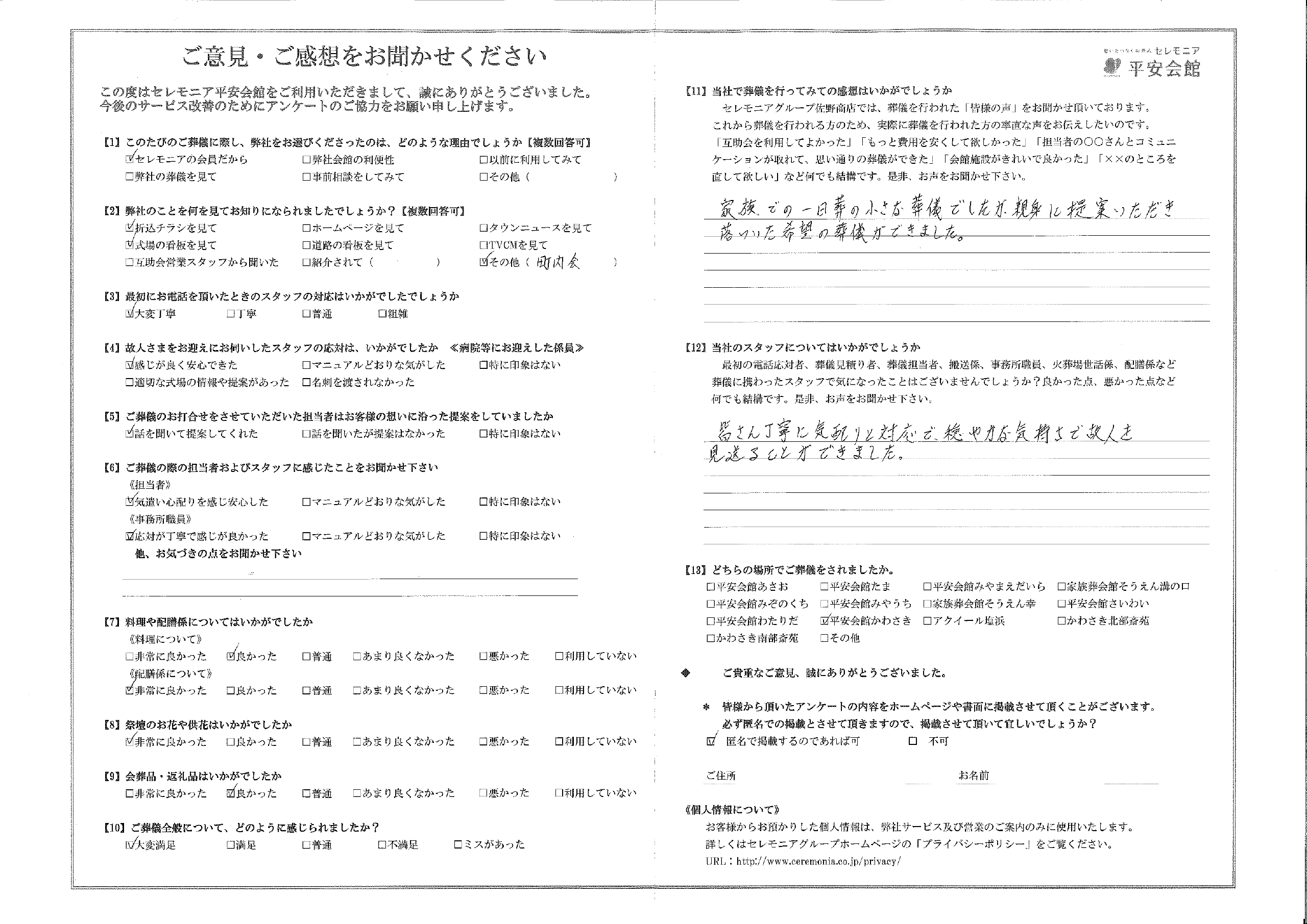当社で葬儀を行ってみての感想はいかがでしょうか