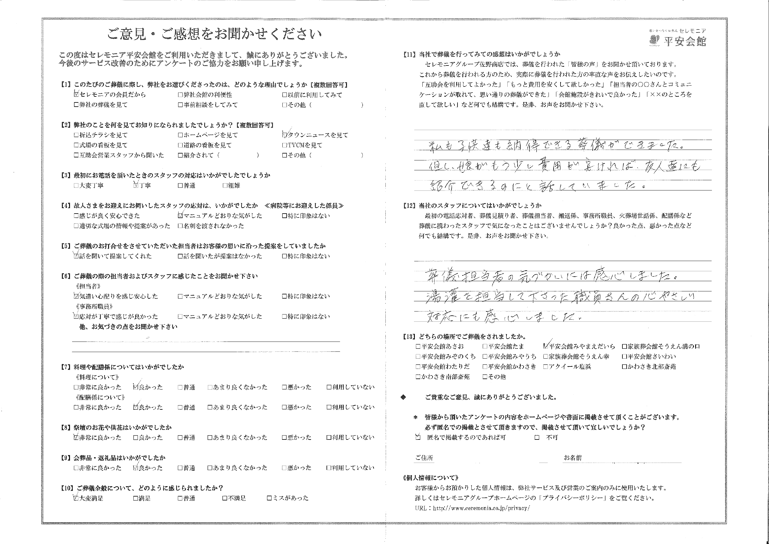 ご葬儀の際の担当者およびスタッフに感じたことをお聞かせ下さい