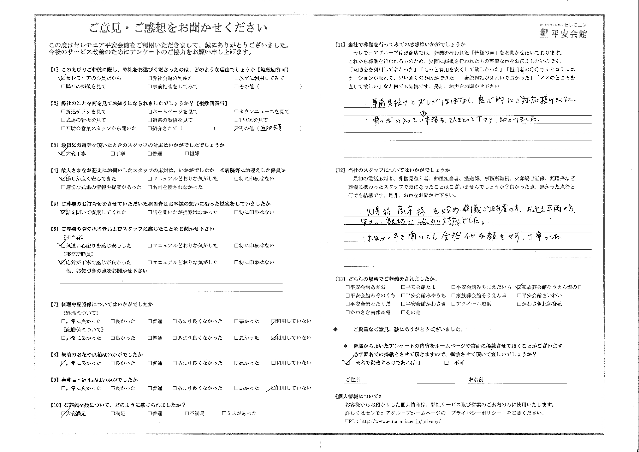 このたびのご葬儀に際し、弊社をお選びくださったのは、どのような理由からでしょうか