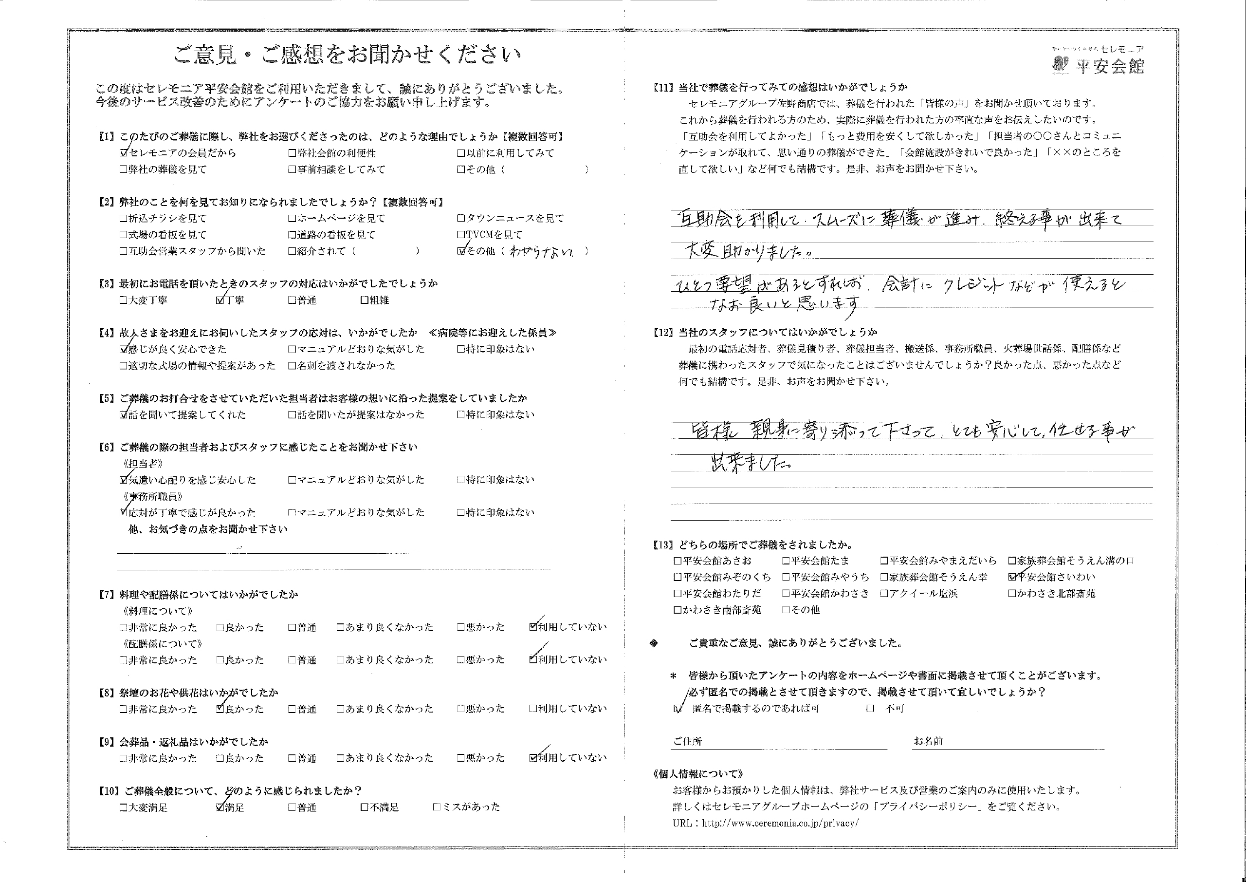 互助会を利用して、スムーズに葬儀が進み、終える事が出来て大変助かりました。