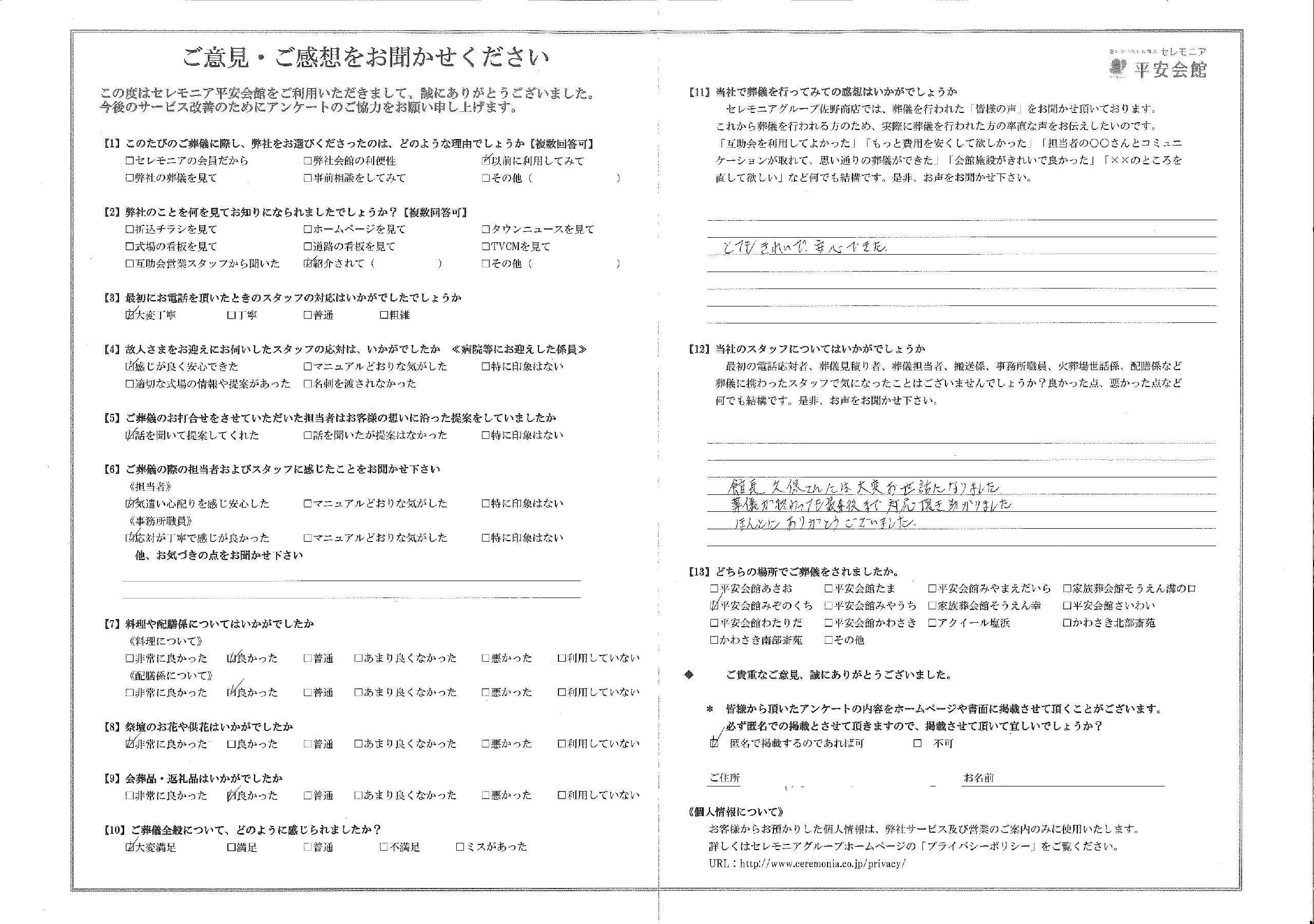 館長久保さんには大変お世話になりました。 葬儀が終わっても最後まで対応頂き助かりました。