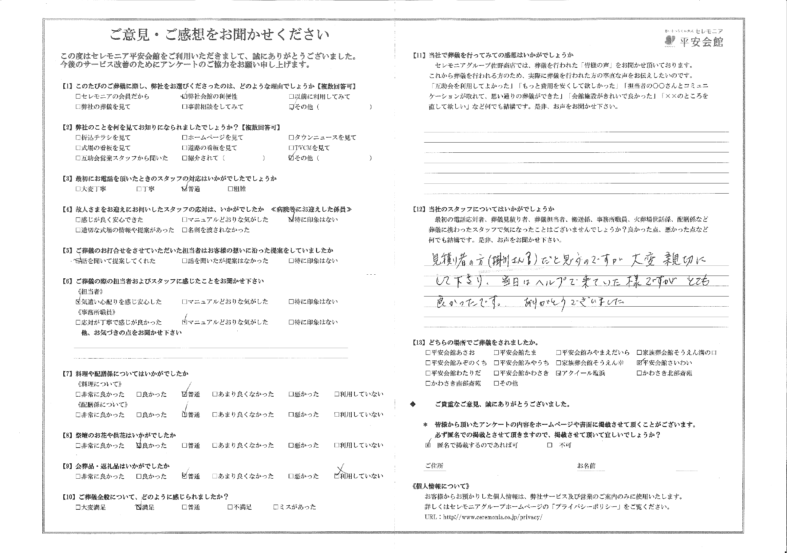 ご葬儀の際の担当者およびスタッフに感じたことをお聞かせ下さい