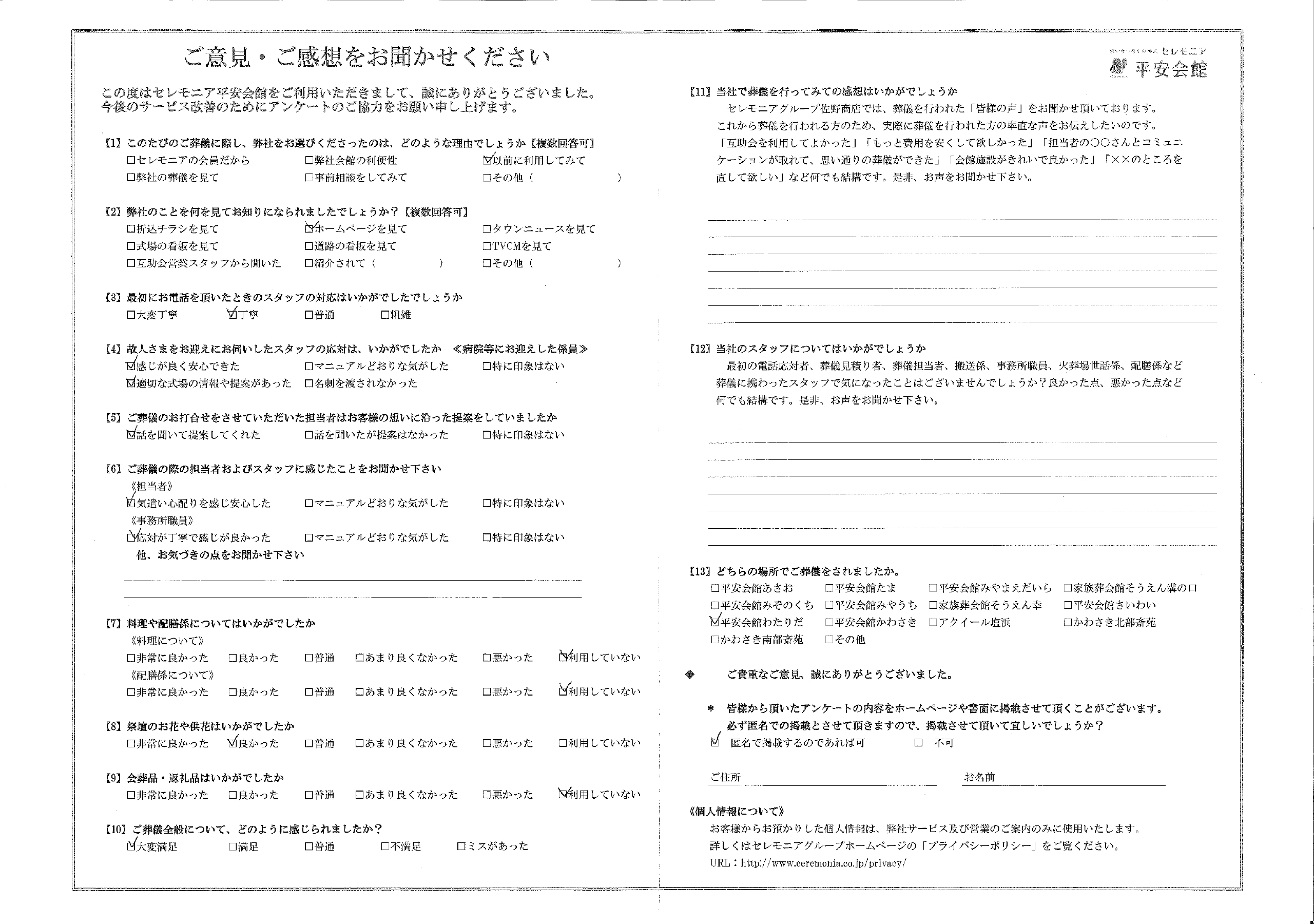 当社で葬儀を行ってみての感想はいかがでしょうか