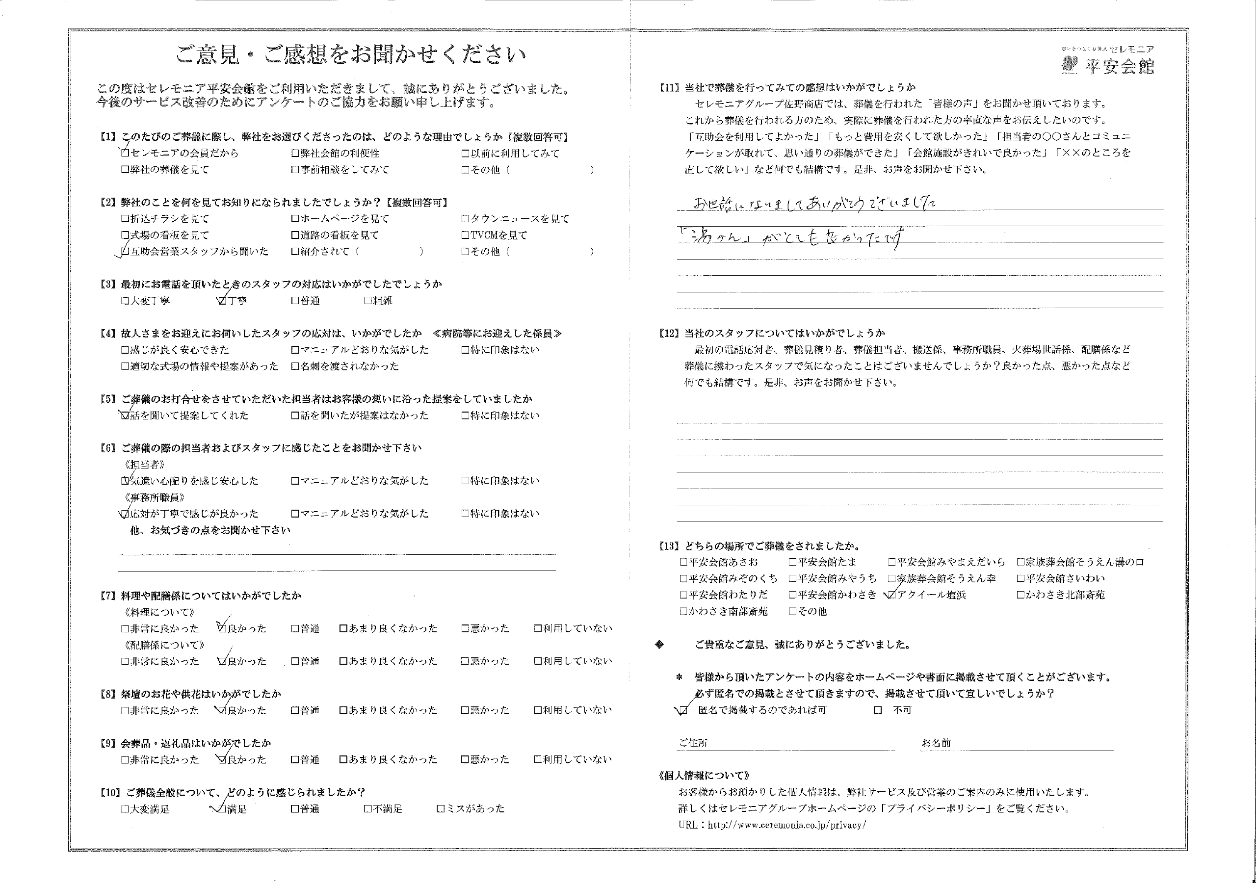 セレモニアの会員だから