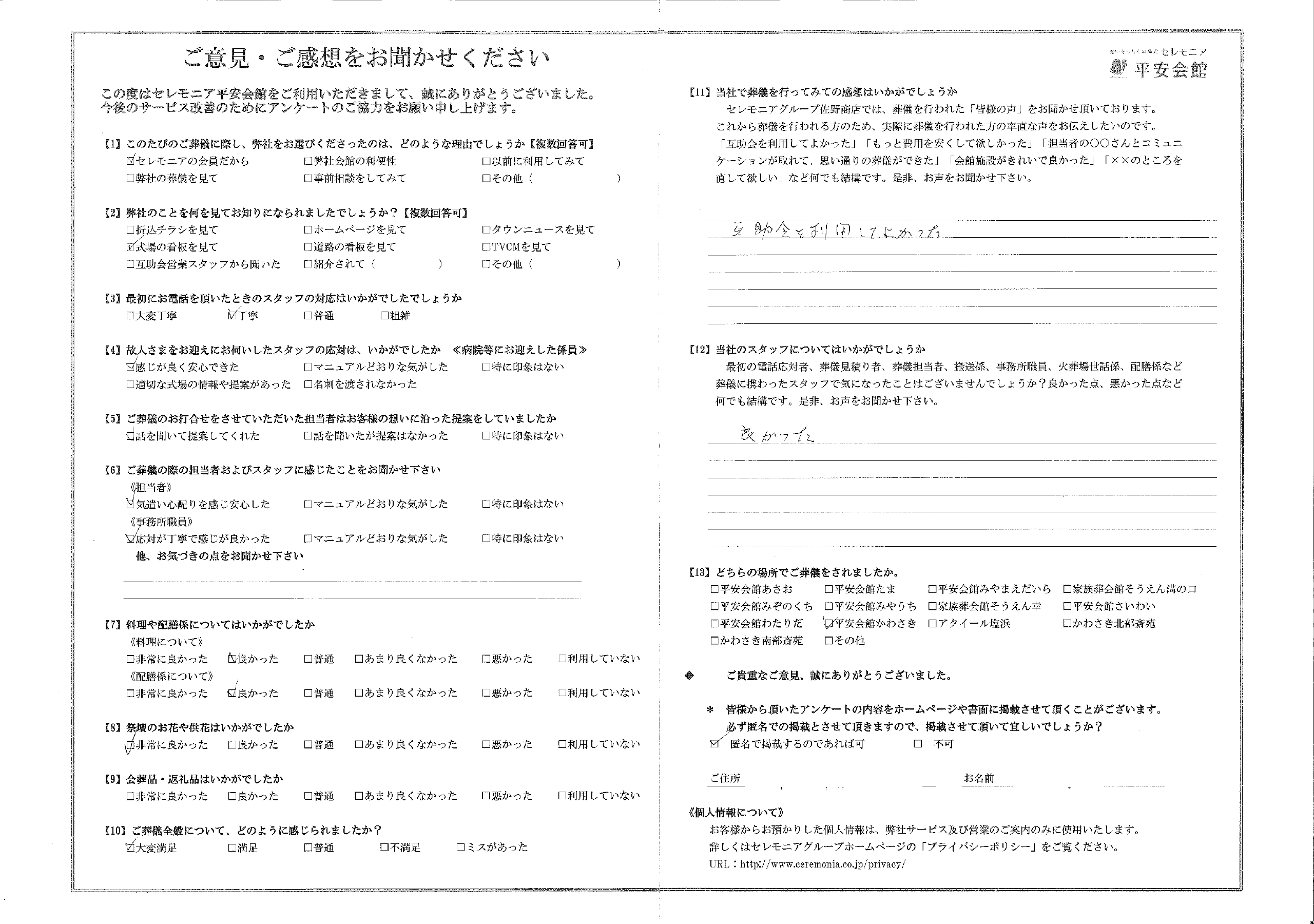 当社で葬儀を行ってみての感想はいかがでしょうか