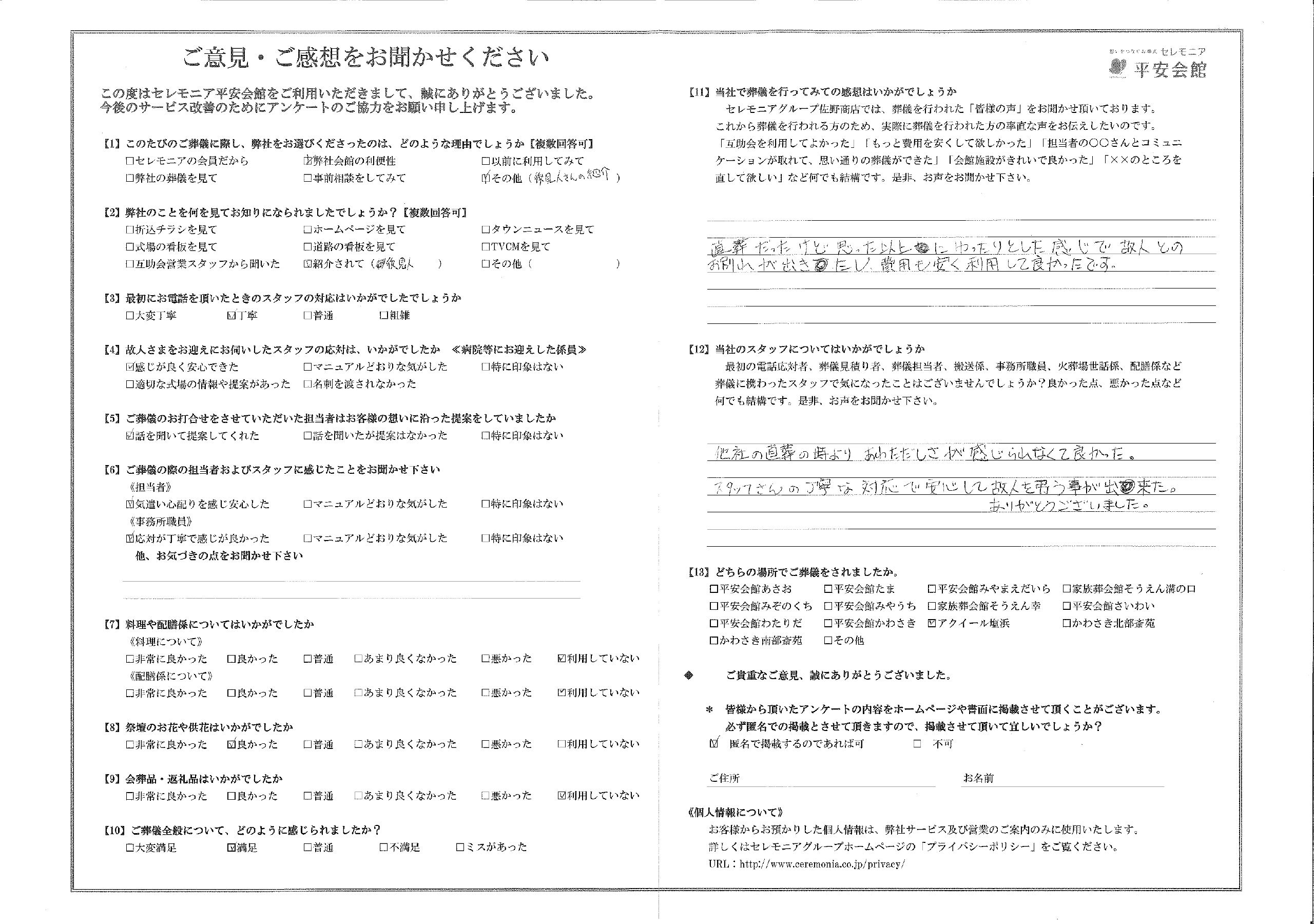 当社で葬儀を行ってみての感想はいかがでしょうか