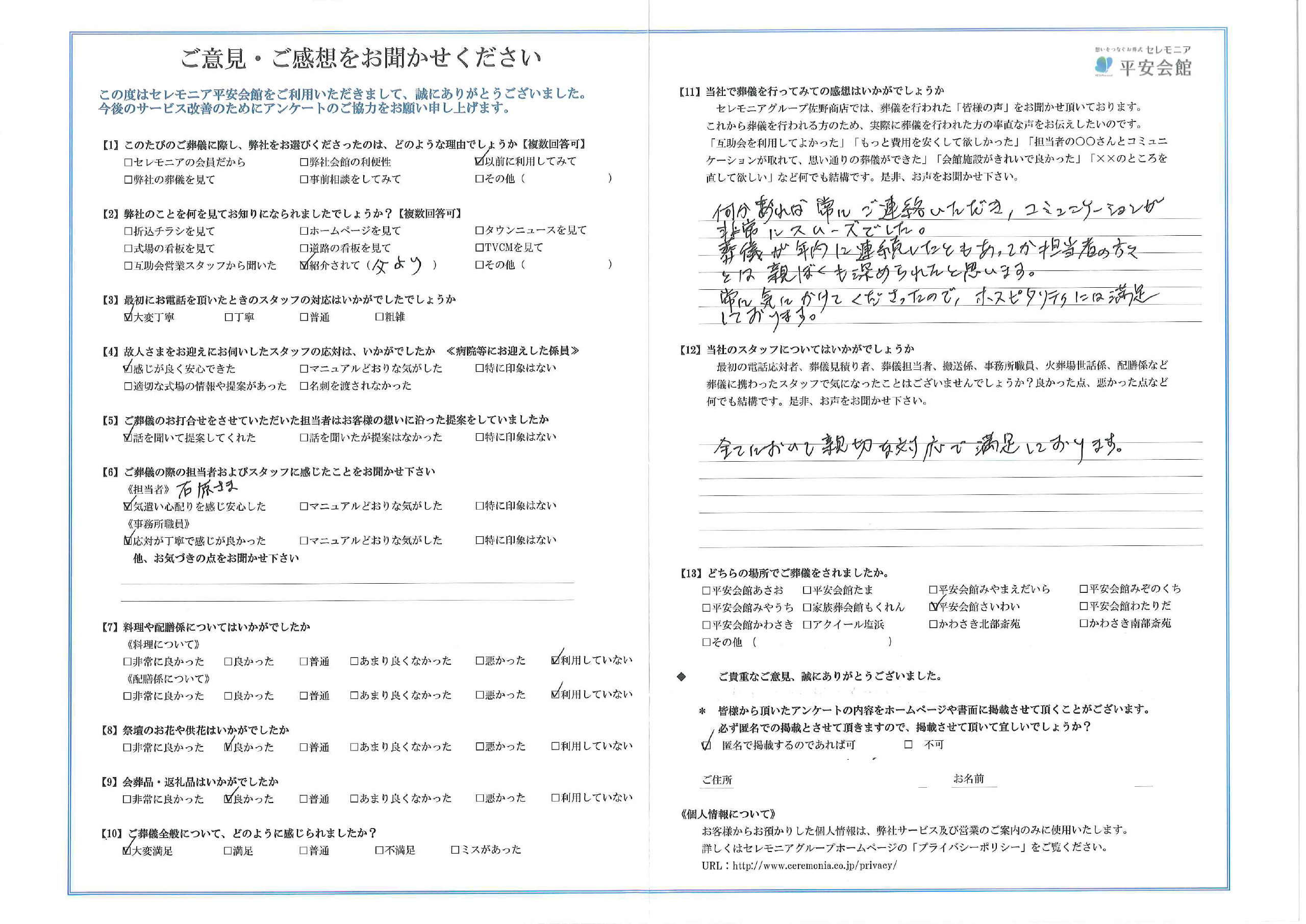 葬儀が年内に連続したともあってか担当者の方々とは親ぼくも深められたと思います。