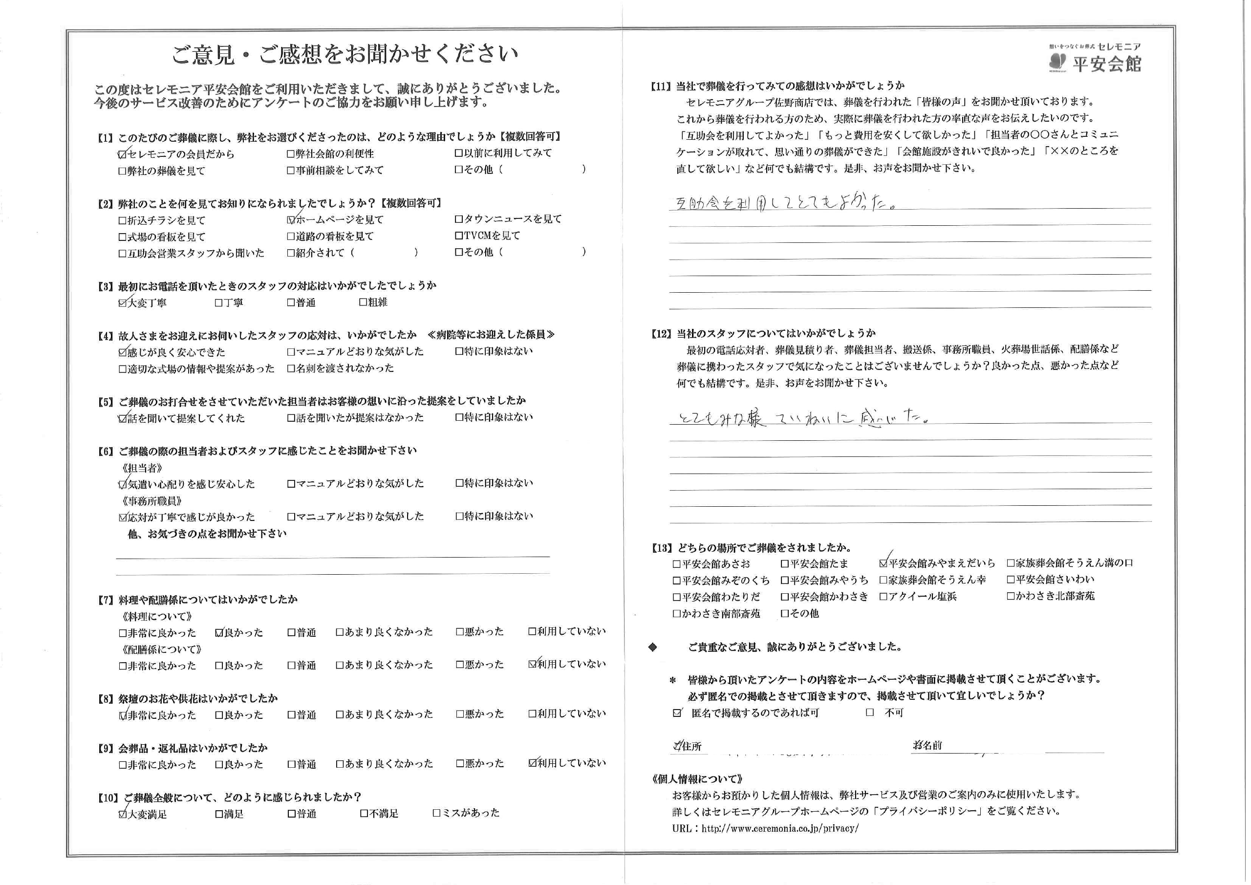 当社で葬儀を行ってみての感想はいかがでしょうか