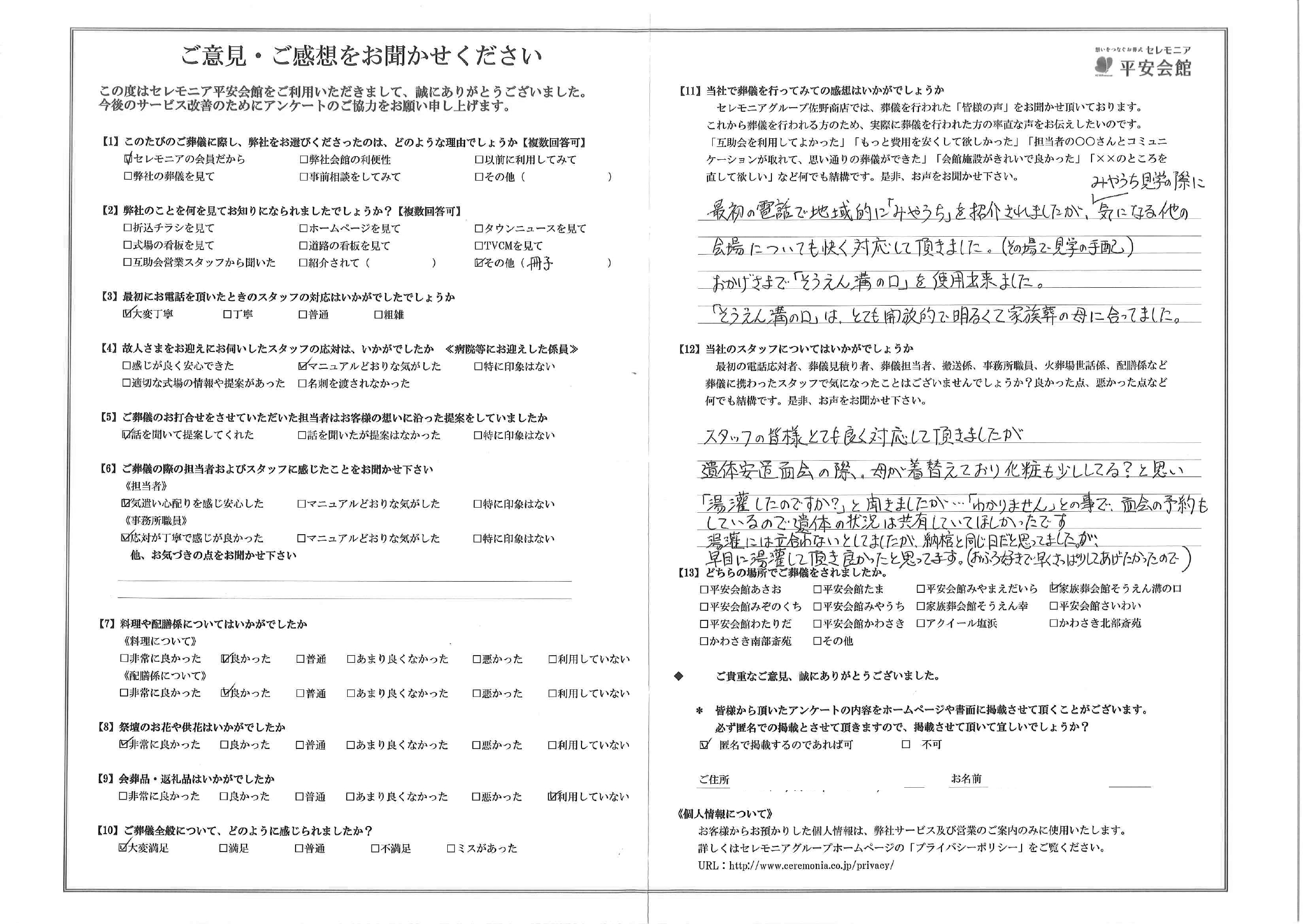 当社で葬儀を行ってみての感想はいかがでしょうか